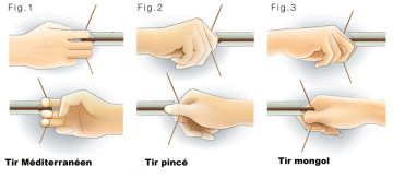 Il existe plusieurs manières de positionner les doigts sur la corde de l'arc.